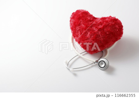 不健康な心のキャラクターと白衣を着た女性医師 上半身イラスト
