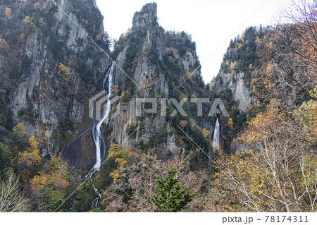 双瀑台から見た銀河流星の滝と紅葉