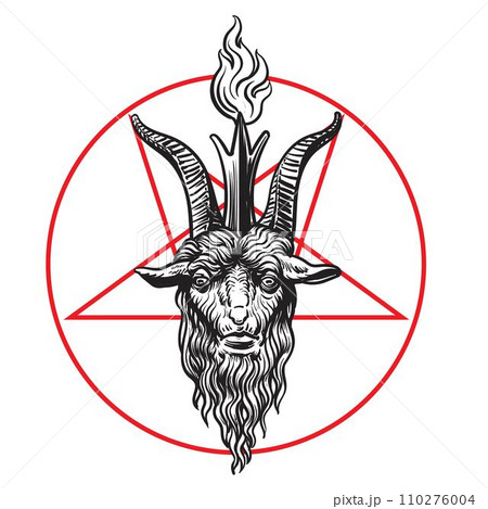 The pentagram, the sign of Lucifer. The head of a horned Goat.