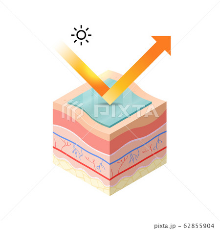protection uv ray of skin with sunblock cream penetrate into epidermis of skin cross-section of human skin layers structure skincare medical concept flat