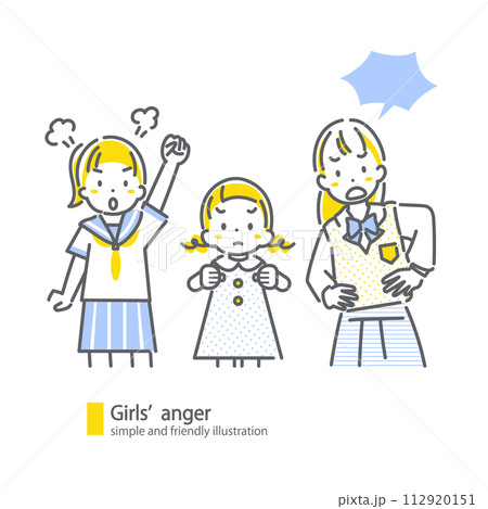 反論する女の子たち シンプルでお洒落な線画イラスト