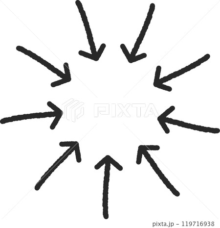 太いマジックペンで描いた手描きのシンプルな矢印 集中のイメージ