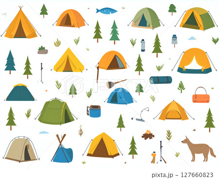 キャンプ道具、テント、カラフルなテント
