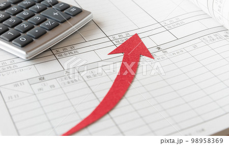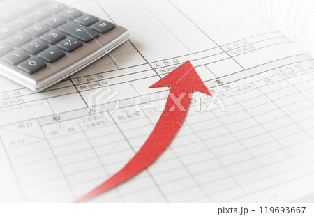 家計簿と上昇矢印 家計管理 収支