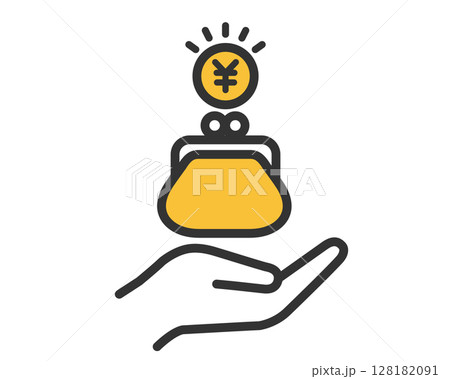 手のひらと財布と円マークのコイン|お金・貯金・支払いのベクター素材