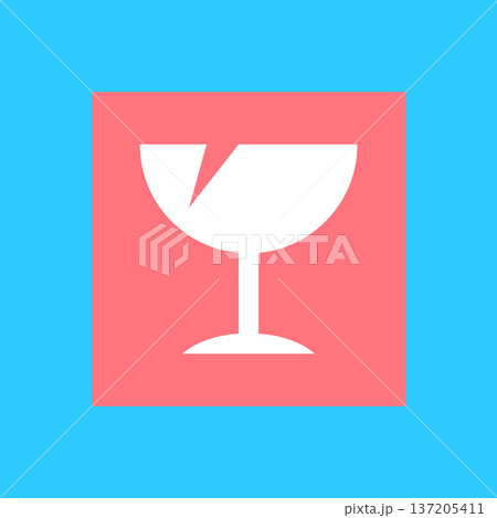 割れてヒビが入ったグラスの赤いアイコン - 壊れ物・ワレモノ注意のマークや不燃ごみのイラスト素材