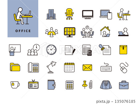 社内業務やデスクワークを表すオフィス用シンプルアイコンセット