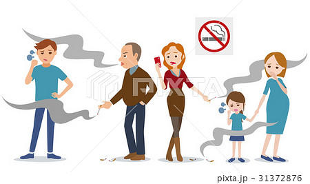 受動喫煙と健康被害、妊婦や子供への影響を表す人物イラストセット
