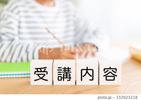 受講内容のブロックと勉強をする小学生の男の子