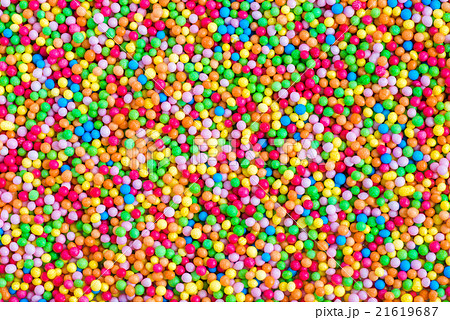 close up of colorful eatable sugar pearls for food