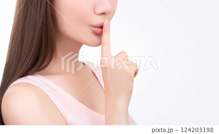 人差し指で内緒のポーズをする女の子の口元(4歳、日本人)