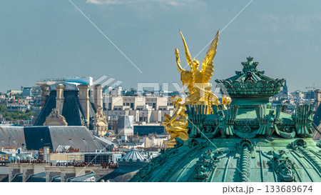 Top view of Palais or Opera Garnier The National Academy of Music timelapse in Paris, France.