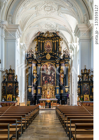 Passau, Germany - Apr 16, 2025: The interior of Parochial Church St Paul, the oldest parish church of Passau, Germany