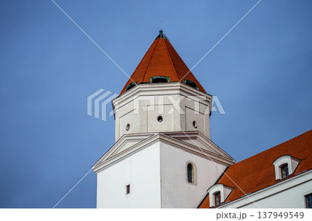 Bratislava Castle is massive rectangular building with four corner towers stands on an isolated rocky hill of the Little Carpathians in Bratislava