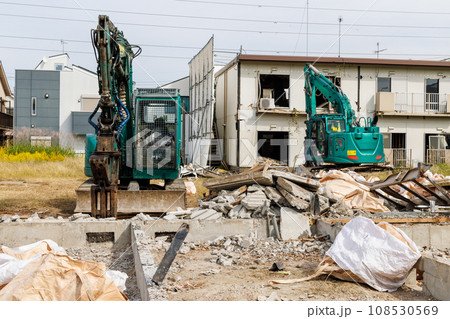 古くなった木造アパートの解体工事