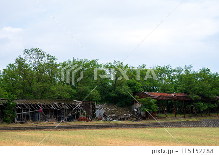 old balcony, facade of the house is in poor condition. dilapidated neighborhood of abandoned houses