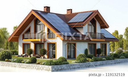 house with a solar panels on the roof isolated on white