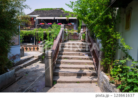 Bridge across canal by restaurants at Zhujiajiao water town, Shanghai
