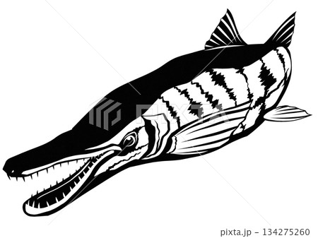 カッコいいけど危険外来魚のアリゲーターガーの切り絵イラスト