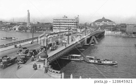 古写真 1933-1945年 東京 隅田川に架かる両国橋と両国国技館