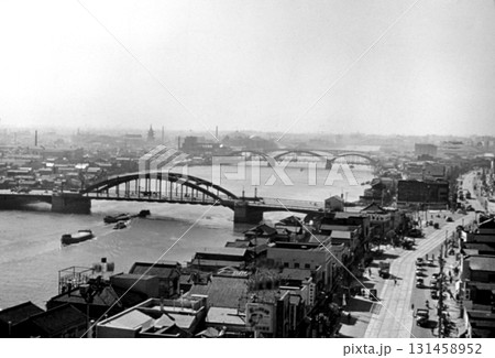 古写真 1956年 東京 浅草から望む駒形橋と厩橋のパノラマ