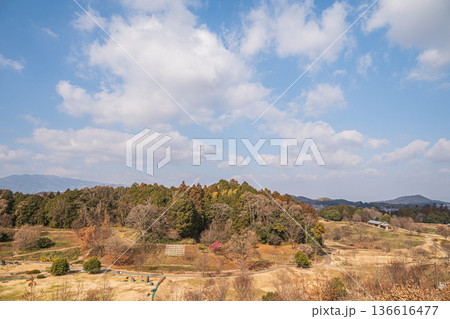 キトラ古墳展望台から四神の広場方面の眺め 奈良県明日香村