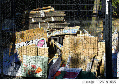 日本の横浜都市景観 大量に出された段ボール…この日、古紙・古布などの回収日