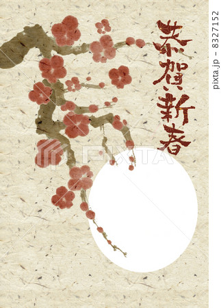 年賀状 手描き墨絵 梅 フォトフレーム版