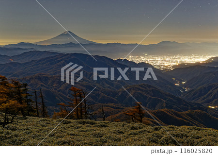 奥秩父・古礼山から見る富士山と甲府盆地の夜景