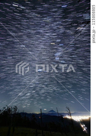 奥秩父主脈縦走路・古礼山から見る冬の星座と富士山