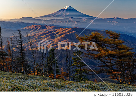 奥秩父・古礼山から見る夕照の富士山