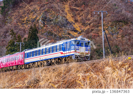 只見線の列車 冬 福島県会津美里町