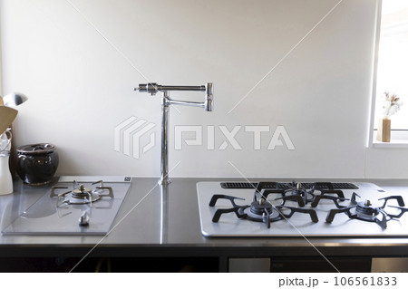 ポットフィラー(水道)を完備したガス台 給水用設備