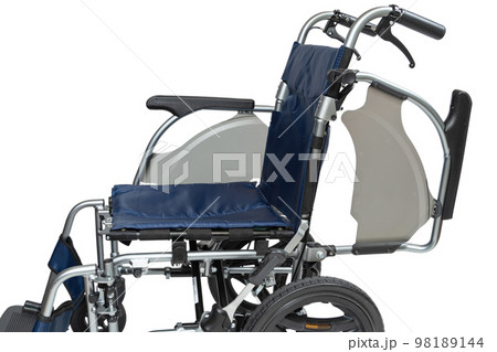 横から見た介助用車椅子 アームサポート ひじ掛け 可動式 はねあげ式 サイドガード