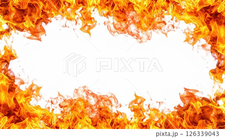 《AI画像》オレンジ色の燃え盛る炎のフレーム素材