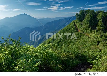 台倉山稜線から見る夏の平ヶ岳山頂方面