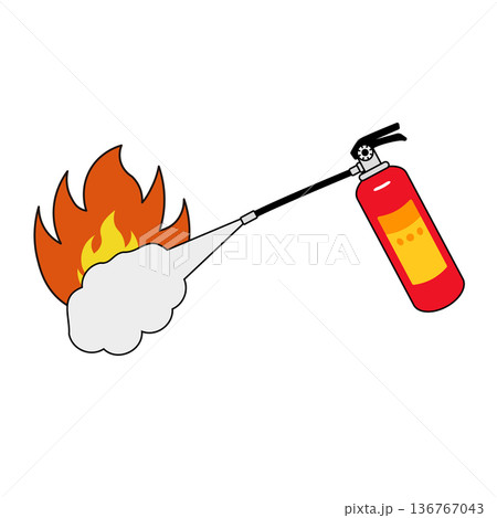 消火器と燃え盛る炎の火災消火イラスト素材