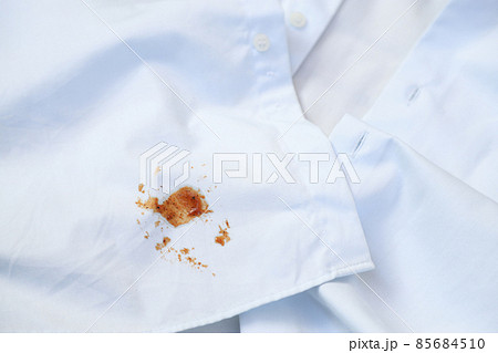 dirty barbeque sauce stain on cloth from daily life activity for cleaning concept. housework care living life of people