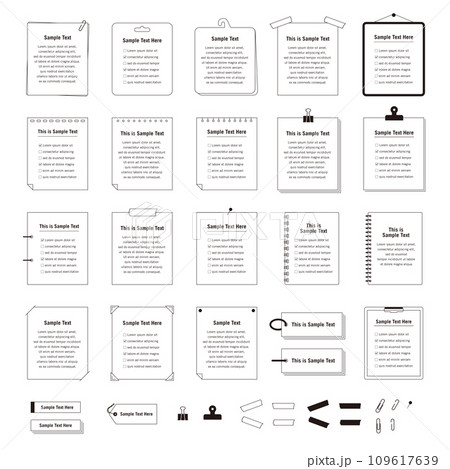 手描きのメモやノートのフレームセット 付箋・バインダー・紙 B03 文字なし