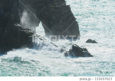 伊良湖岬の日出の石門に打ち寄せる荒波