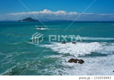 伊良湖岬の岩礁に打ち寄せる荒波