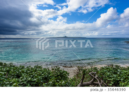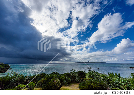 沖縄のエメラルドビーチ 晴れと雨の境目