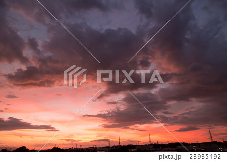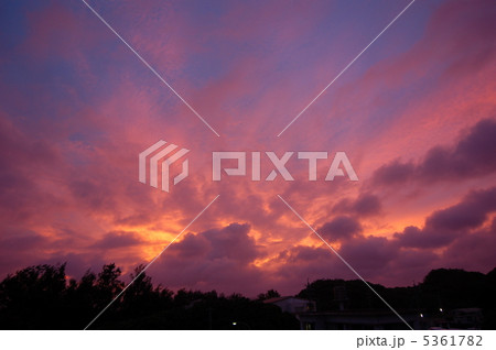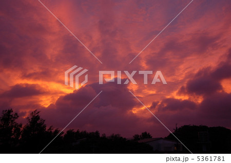 台風接近中の空 台風の季節 曇り空 夕方 夕暮れ 日暮れの空 真夏の空 コピースペース 文字スペース