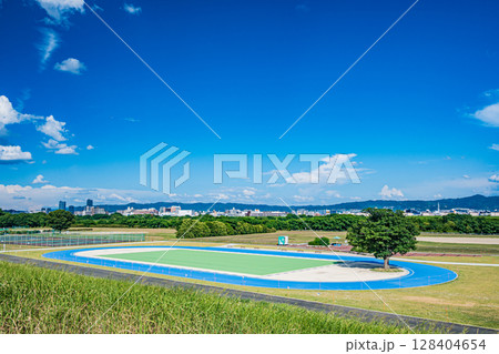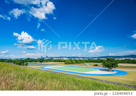 真夏の淀川河川公園風景