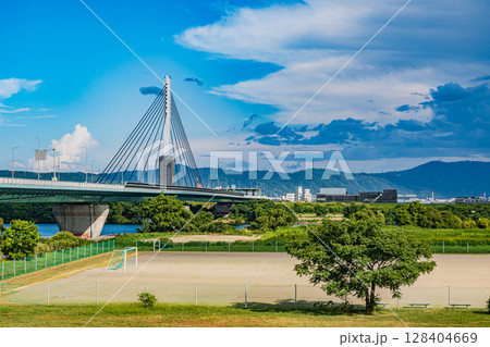 淀川河川公園と鳥飼仁和寺大橋 摂津市