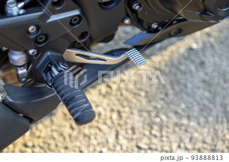 マニュアルバイクの右側ステップとリアブレーキのフットペダル