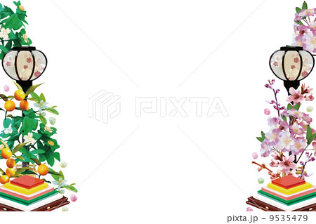 水彩で描いた桜と橘の装飾と桃の花のフレーム(ひな祭りの素材)