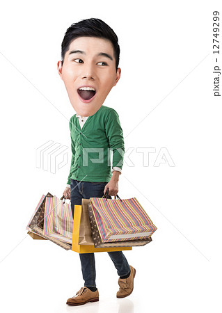 Funny shopping Asian guy
