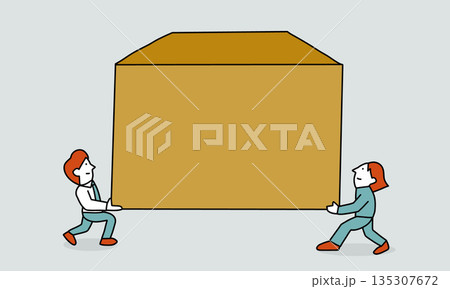 大きい箱を持ち上げる二人 引越し・税金・年金などのイメージイラスト