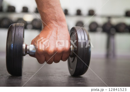 Fit man lifting heavy black dumbbell